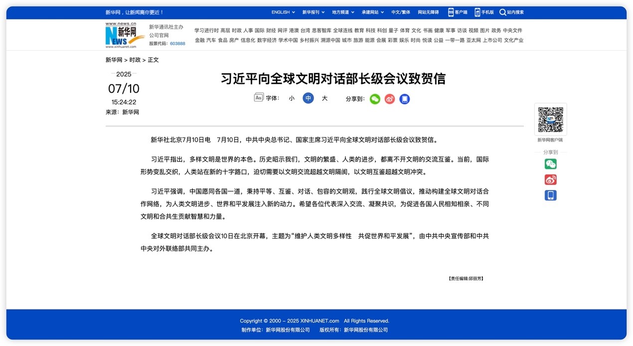 习近平向全球文明对话部长级会议致贺信11